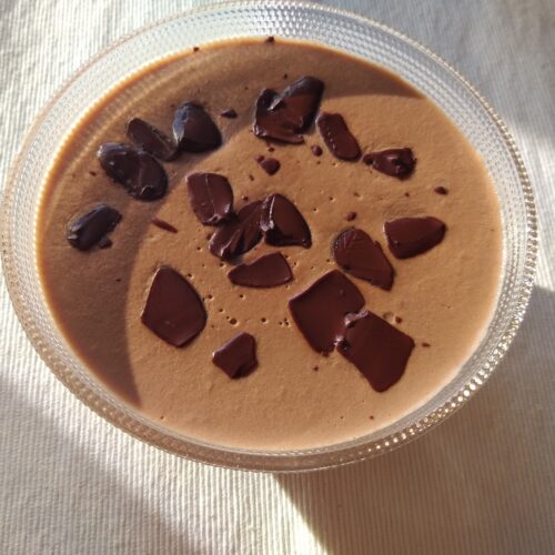 - Mettere in una ciotola il budino e spezzettare sopra il cioccolato fondente.