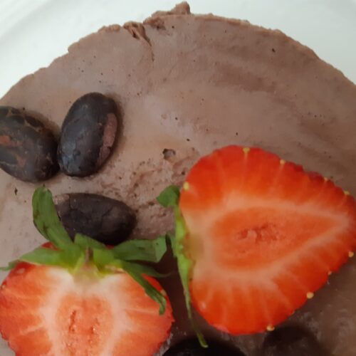 - In un mixer versare il tofu, lo zucchero, il cacao amaro, il latte di riso e l'agar agar e frullare.