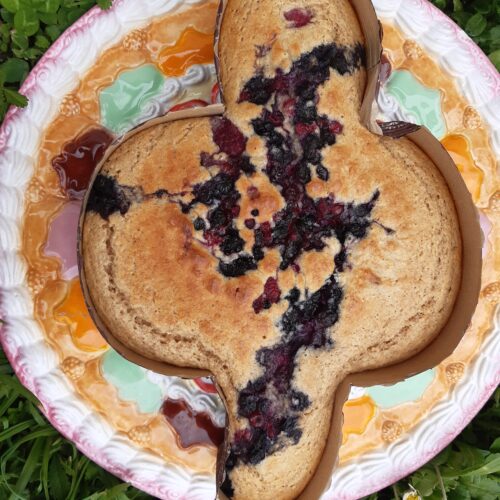 - Dopo circa 5 minuti di cottura versare sopra alla colomba i frutti di bosco e proseguire la cottura in forno per altri 40 minuti controllando con uno stecchino prima di sfornarla.