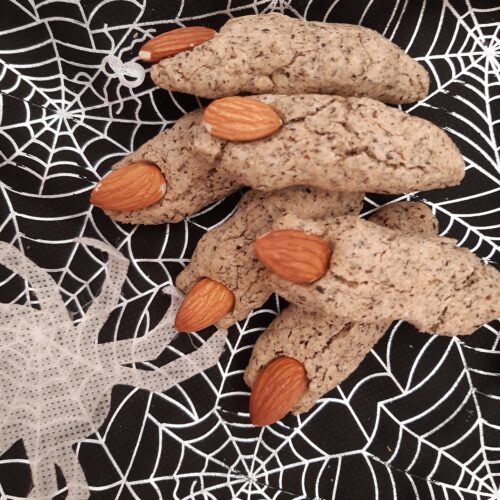 • Adagiare le dita di strega su una teglia rivestita con la carta forno e cuocere in forno per 8/10 minuti.