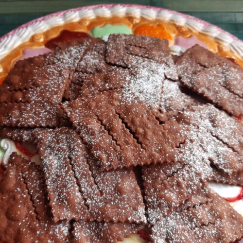- Stendere l'impasto fino ad ottenere una sfoglia sottile. Tagliare dei rombi e metterli su delle teglie rivestite di carta forno e cuocere per 7/8 minuti in forno caldo e statico.