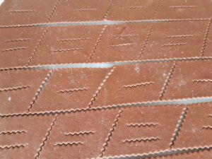 - Stendere l'impasto fino ad ottenere una sfoglia sottile. Tagliare dei rombi e metterli su delle teglie rivestite di carta forno e cuocere per 7/8 minuti in forno caldo e statico.