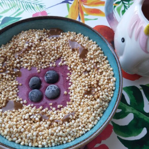 Frozen yogurt ai mirtilli e quinoa soffiata