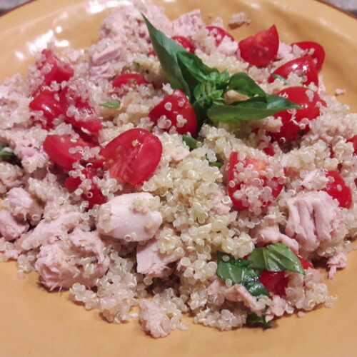 - Impiattare unendo la quinoa, il tonno e i pomodori e lasciare insaporire per una notte in frigorifero.
