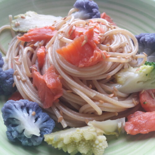 - Scolare gli spaghetti e farli saltare in padella insieme ai cavoli e al salmone.